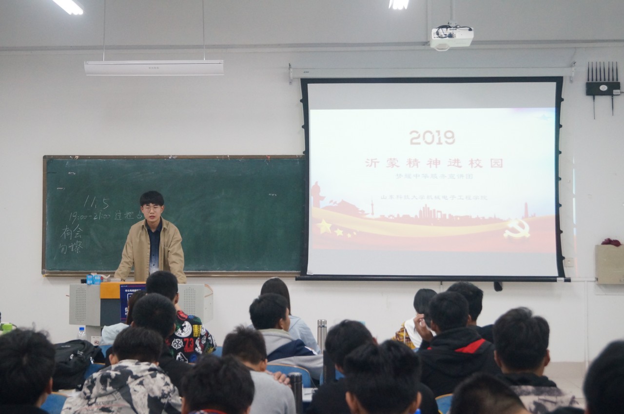宣讲从“沂蒙精神”的内涵和发展历程、“沂蒙精神”的当代价值、新时代大学生应当如何践行“沂蒙精神”三方面展开,并结合《力量》纪录片等影视作品,直观生动地带领广大同学,深入了解了沂蒙精神“水乳交融、生死与共”的具体内涵。宣讲团成员提出,前辈们为我们的解放事业奉献了一切、牺牲了一切,我们要倍加珍惜今天的幸福生活,努力弘扬、践行沂蒙精神。梦耀中华服务宣讲团骨干成员还分享了他们在沂蒙地区的实践经历和实践故事,讲述了社会实践的感受和切身体验到的沂蒙精神,使同学们收益颇丰。