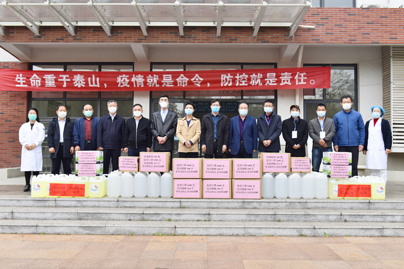 付强一行代表企业向学校捐赠了防疫物资。校党委常委、宣传部部长李克周代表学校接受捐赠,党委学校办公室、后勤管理处及化工学院主要负责人参加活动。