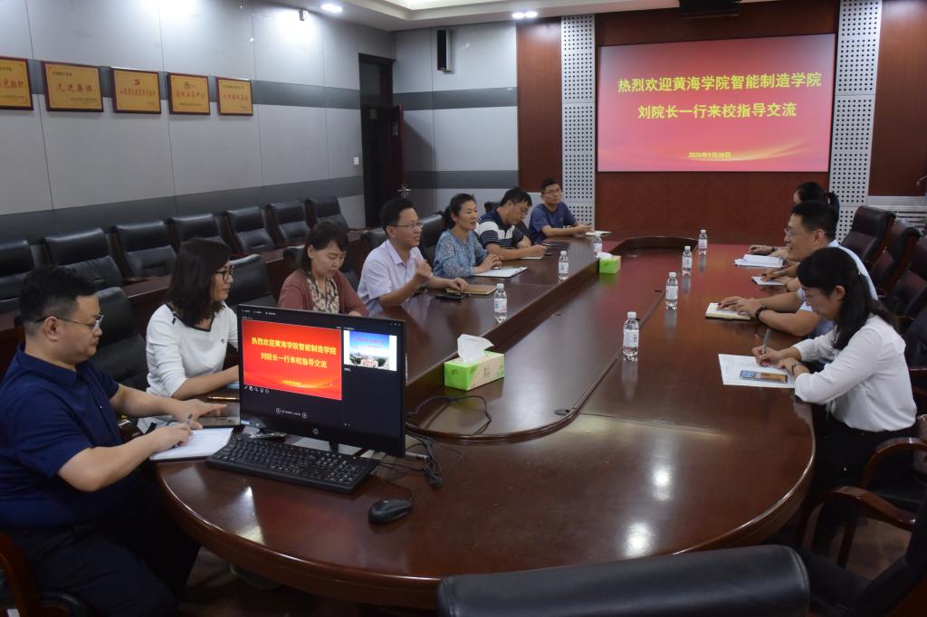 韩宝坤对刘纪新一行到访表示热烈欢迎,并对学院的发展情况进行简要介绍。韩书记表示,学院正扎实推进工程教育认证等专业建设重点工作,希望今后与黄海学院取长补短,共谋发展。孙静介绍了学院新旧动能转换专业群及新工科专业的建设情况,并就校企协同育人机制与来访人员进行了交流。