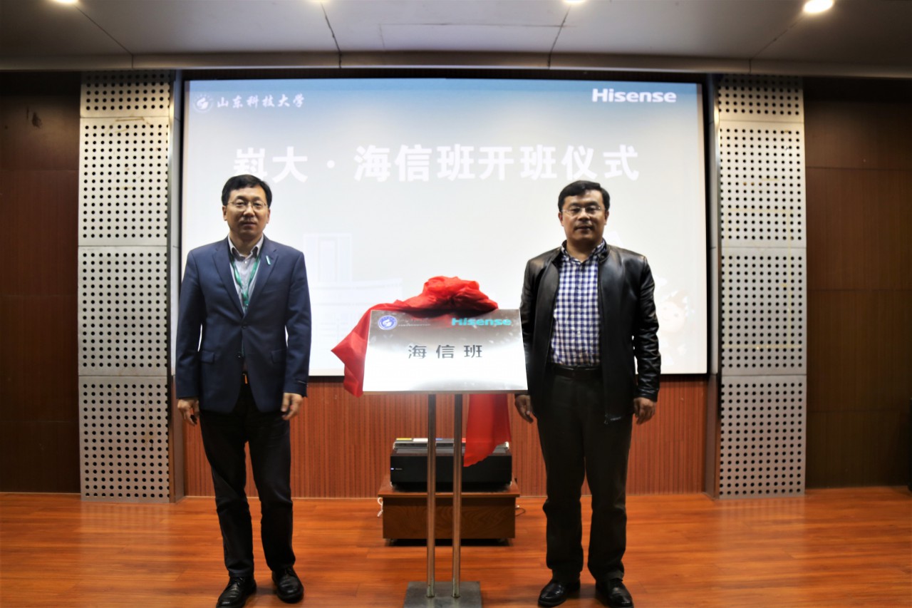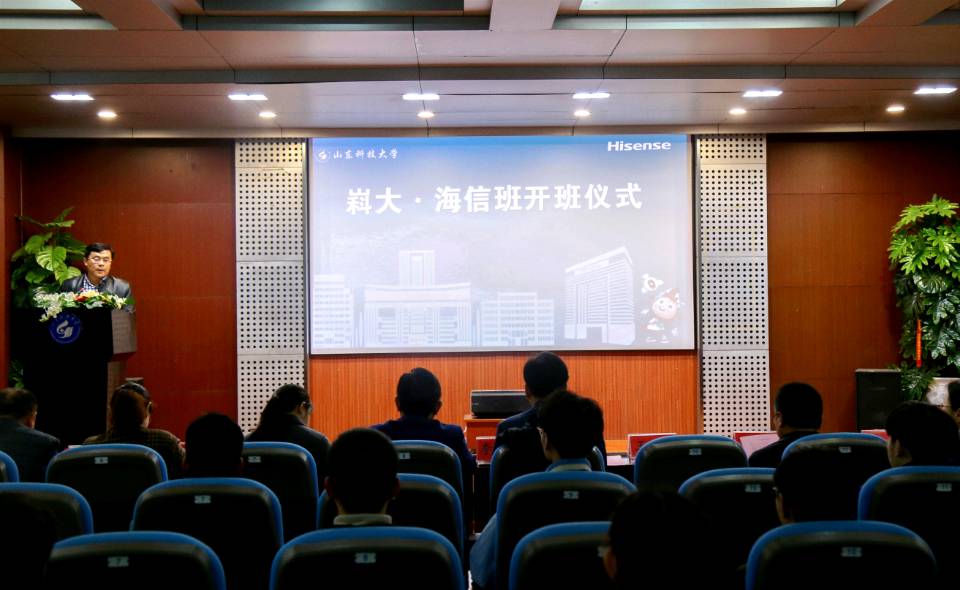 开班仪式上,王荣超致辞,介绍了学校的基本情况,向海信视像对学校工作的支持表示感谢。他表示,“海信班”的成立标志着校企合作迈入了一个新的阶段,学校将在加强校企深度合作、推进产学研结合、整合社会优质资源、服务社会经济发展方面迈出更加坚实的步伐,探索可复制、可推广的协同育人机制,产教融合,实现学校、企业、学生和社会等多方面的共赢。他勉励“海信班”优秀学子勤奋学习,锤炼本领,以优异的成绩回报学校,回报企业,回报社会。