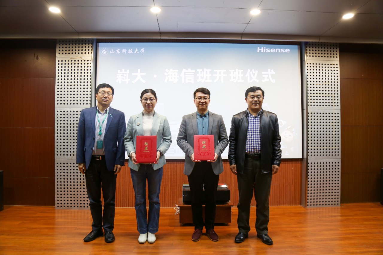 李炜介绍了青岛海信集团有限公司的发展情况,他表示,海信集团把人才战略作为企业的第一战略,将为“海信班”的同学提供专业化指导。他希望同学们珍惜这次机会,认真学习理论知识,扎实投入实习实践,提高锻炼动手能力,为将来的就业工作或深造学习打下坚实的基础。