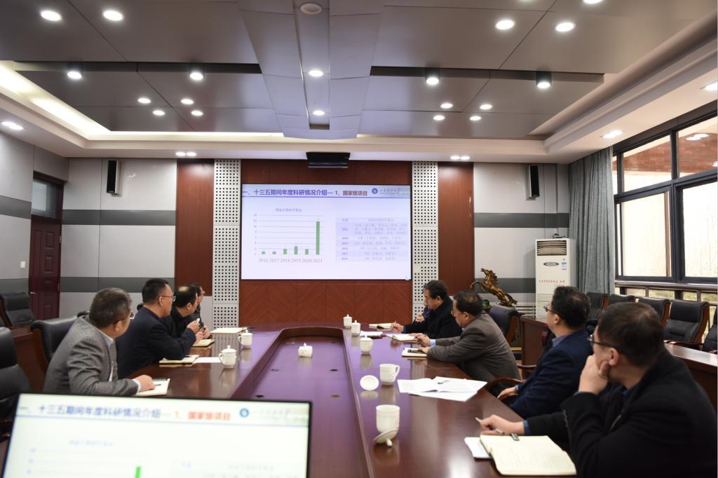 张强简要汇报了学院的基本情况,着重介绍了2021年学院科研工作情况、八个主要研究方向和学院“十四五”规划有关内容,希望学校在高水平平台建设、国家级重点项目申报、科研团队建设等方面予以支持。