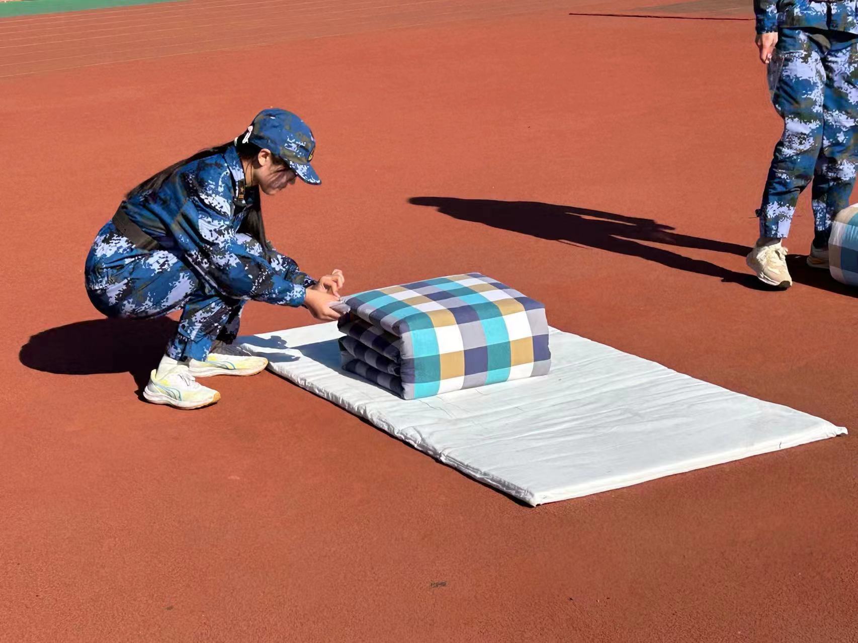 据悉,本次比赛采取分组计时方式,包含识图用图、战场医疗救护、综合体能、叠军被、手榴弹投掷等项目,综合考查学生们对军事技能的掌握、体能素质以及团队协作能力。机电学子奋勇争先,赛前多次训练的成果在赛场上发挥的淋漓尽致,每一项比武中都展现了昂扬的精神风貌。综合体能项目中,董昌宇无惧寒风,一马当先,凭借灵活巧妙地走位和强健的身体素质拔得头筹;张凯媛向来严谨认真的态度在叠军被项目中大放异彩,在她娴熟的操作下,一个线条平直、宛若豆腐块一般的被子逐渐成型,为Ky开元集团再添单项第一。