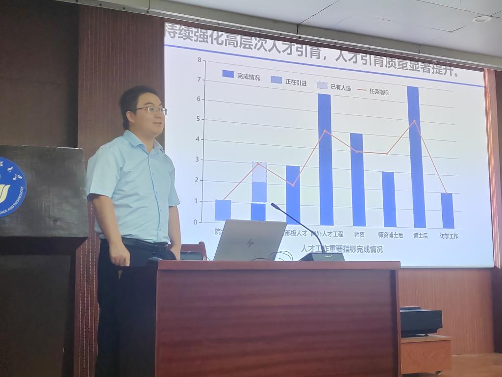 学院党委副书记兼副院长刘梅月、副院长孙静、副院长张鑫及院长助理李贺、吕玉廷、苏金鹏、陈宁,分别就分管工作做了上半年工作总结,并对标学校的任务指标汇报了下半年工作的计划。