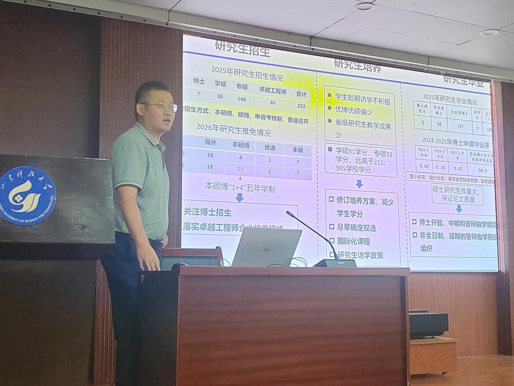 张强重点从国家级项目、平台建设、大型横向项目、科技奖、工程教育专业认证、学生高水平科创竞赛、国际交流等方面做了部署,强调要对标学校的任务指标,统筹安排,争取产出更多成果。