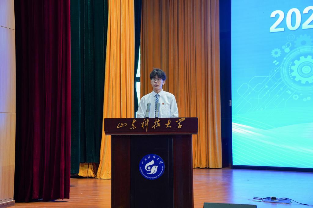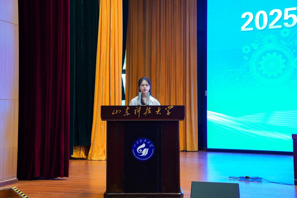 班主任代表周锋以“新三味书屋”勉励2025级学子在大学殿堂保持好奇心,锤炼真本领,厚植家国情,书写不负时代的青春篇章。在校生代表、院学生会执行主席赵赟赫向新生发出了倡议,他号召新生们要端正学习态度、提升综合能力、勇于挑战自我,珍惜大学的美好时光,为自己的梦想不懈奋斗。研究生新生代表机械工程2025级张新月表示,将以“奋斗者破茧”的毅力深耕学术,通过观察力挖掘创新突破,践行“谋定后动”理念,将科研融入产业实践。本科生新生代表、机设2025级3班姜辰清以《浪浪山的小妖怪》为喻,表示将超越环境局限,以空杯心态深耕专业;打破思维定式,以创新勇气探索专业深化、竞赛挑战、实践历练之路;将个人理想融入时代洪流,将成长融入国家发展航道。