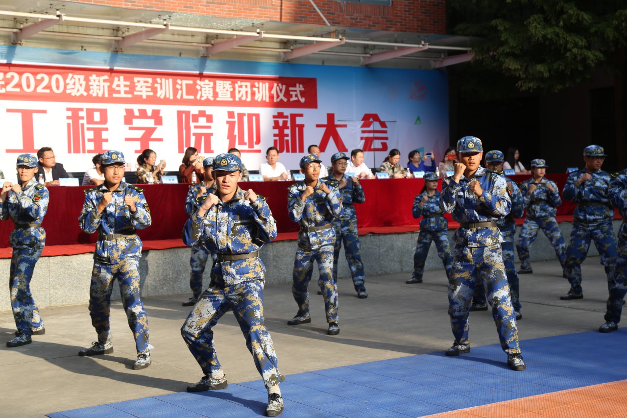 下午三时,韩宝坤宣布汇演开始,在庄严的分列式进行曲中,2020级新生按方队依次接受检阅,他们迈着整齐的步伐,高喊口号,在主席台前依次展示停止间转法、跨立、齐步走、正步走、跑步等队列形式;优秀学员代表展示了格斗拳以及战术表演,他们的拳法刚劲有力,出枪动作整齐划一,以昂扬的姿态、饱满的热情完成了本次汇演。