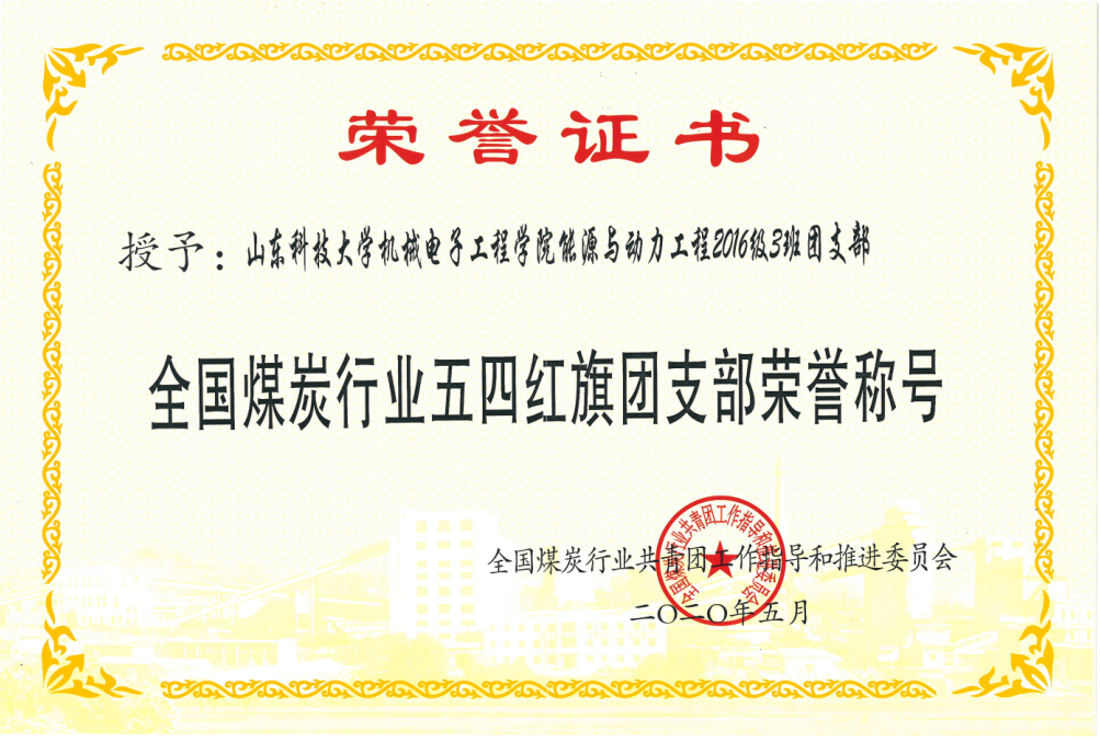 日前,全国煤炭行业共青团工作指导和推进委员会对2019年度全国煤炭行业优秀团委(团支部)、团干部和共青团员进行了表彰,Ky开元集团Ky开元集团能源与动力工程2016级3班团支部荣获“全国煤炭行业五四红旗团支部”称号。