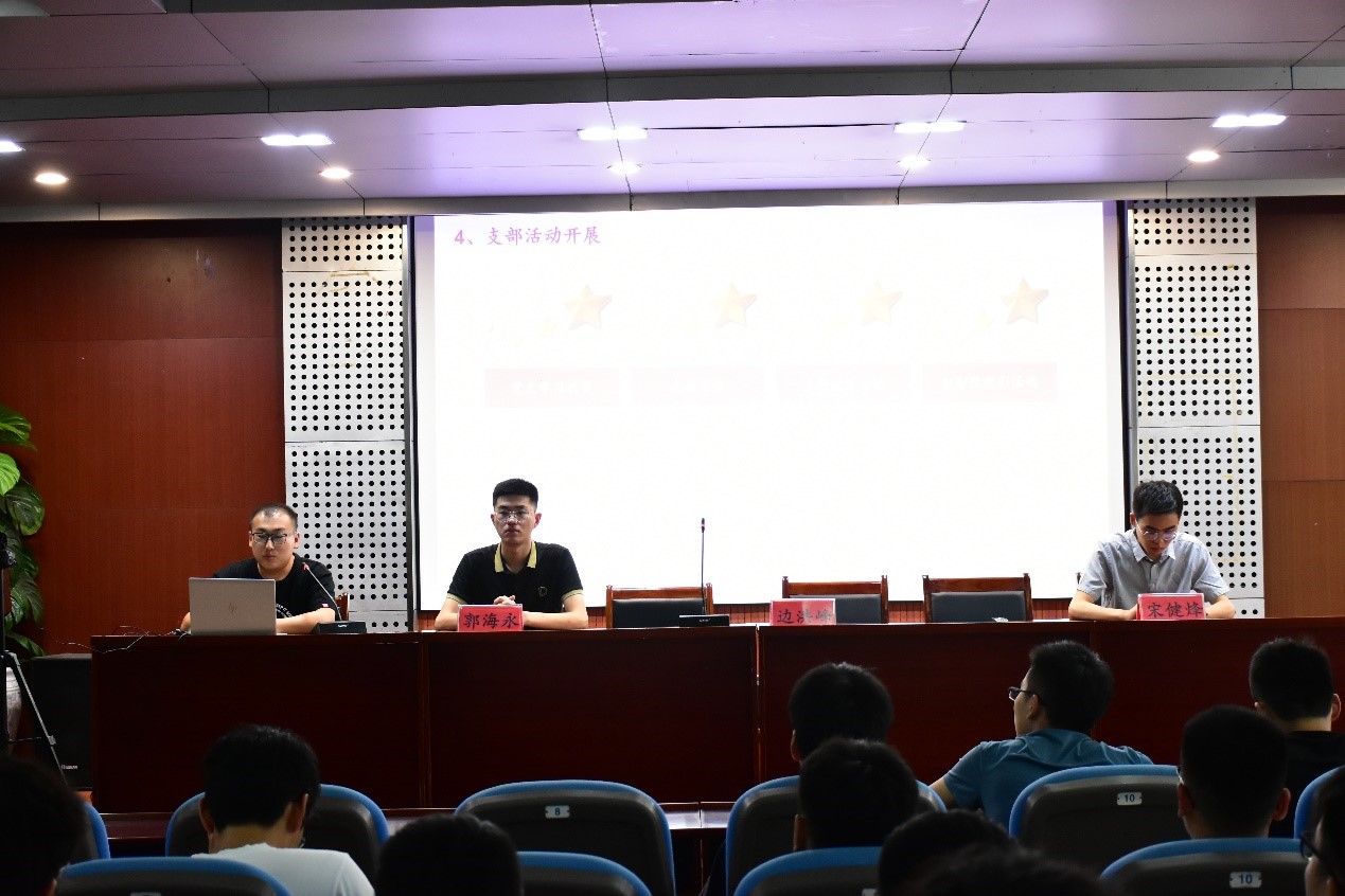 会上,党支部书记边洪峰老师以“初心永坚守,使命谱华章”为主题,围绕当前研究生入党情况,从支部建设、特色党支部及相关建设经验三个方面进行分析,旨在加强支部对学生思想引领;并对新生档案及党员材料的整理、三会一课制度、小平科技创新团队党支部以及党员发展流程等进行了深入讲解,并鼓励大家树立初心,践行初心,坚守初心的思想理念。