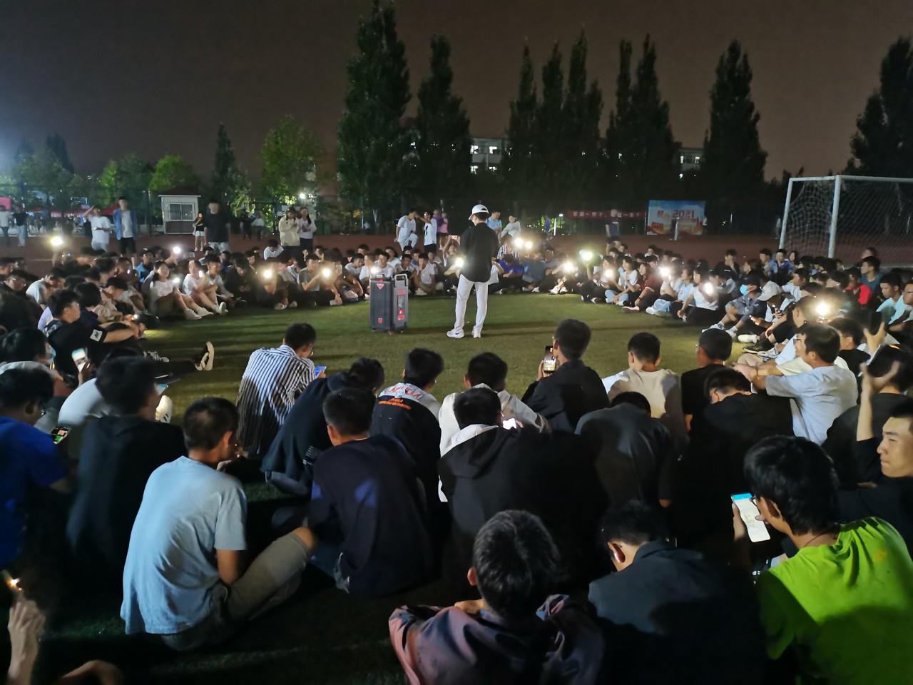 操场上,大家席地而坐围成一圈,活动以每个专业班级的歌舞表演为主,风格多样,有忧郁轻缓的《后来》,也有坚韧感人的《平凡之路》。机设21-1班李雨航为同学们演唱了流行音乐《7%》,氛围轻松甜蜜,同学们纷纷打开手电筒,随着音乐挥舞光亮,轻轻伴唱。Ky开元集团大艺团带来的街舞表演将整个活动推向高潮,掌声和欢呼声此起彼伏,汇成一片热情四溢的海洋。最后,联欢活动在2021级兼导徐子昂演唱的一首《虎口脱险》中落下帷幕。同学们纷纷表示:“歌声虽然停止了,但心中的温暖从未消散。”