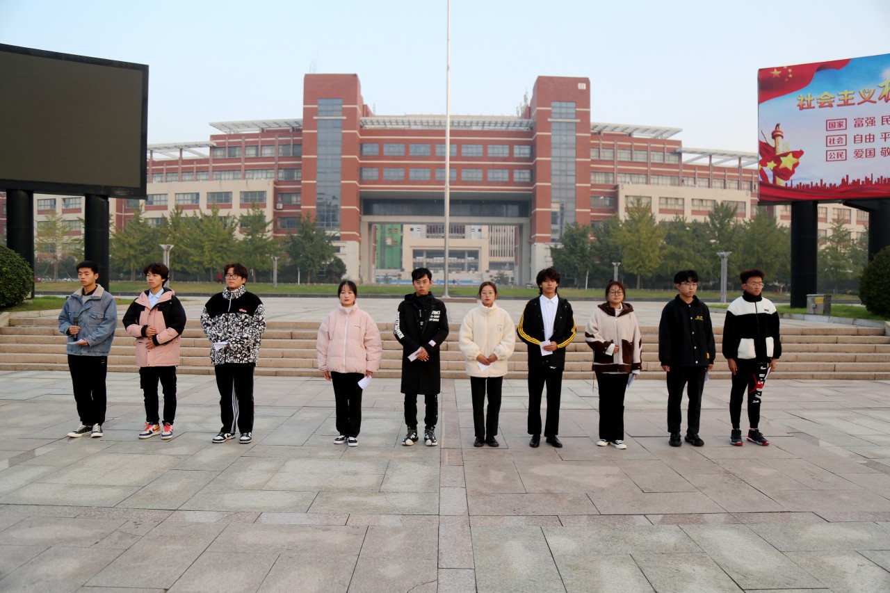 升旗仪式后,学生代表在国旗下诵读革命先烈“十一书”。十月清晨,学生代表在晨光中的诵读声情并茂,让同学们了解了赵一曼、夏明翰、陈毅安等革命先烈的英雄故事,领略到了他们用生命书写忠诚、用鲜血捍卫信仰、用热血滋养中国的无我精神。深秋天寒,但每个人内心都热血沸腾。在场的师生仿佛身临其境,感受到了当年先烈们的无畏与伟大,并向他们致以最崇高的敬意。
