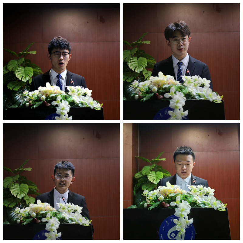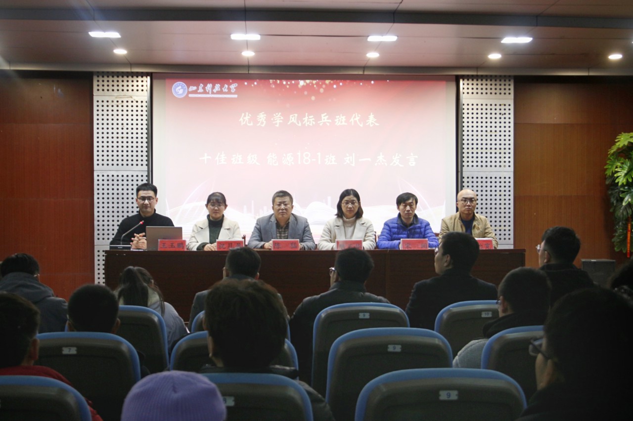 “优秀学风标兵班”“优秀学风标兵宿舍”“优秀学风标兵”获奖学生代表刘一杰、赵翎发、宋子龙向大家分享在校期间的成长经历和心得体会;学院学生会主席杨忠源领读学风倡议书,号召同学们自强不息、脚踏实地、博学慎思,营造学习之风,承接科大精神,以更优异的成绩献礼党的百年华诞、建校70周年。