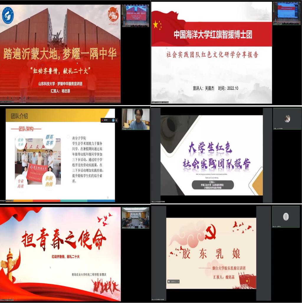 百年峥嵘岁月,今朝步履铿锵。本次活动的顺利举办有助于推动驻鲁高校大学生社会实践团队的交流互鉴,有助于加强驻鲁高校大学生红色文化社会实践团队建设,有助于教育引导广大学生以红色精神启智润心、以实际行动彰显青年担当、以优异成绩献礼党的二十大。(通讯员:管志伟、李亚迪 摄影:郑宏燏、李亚迪)