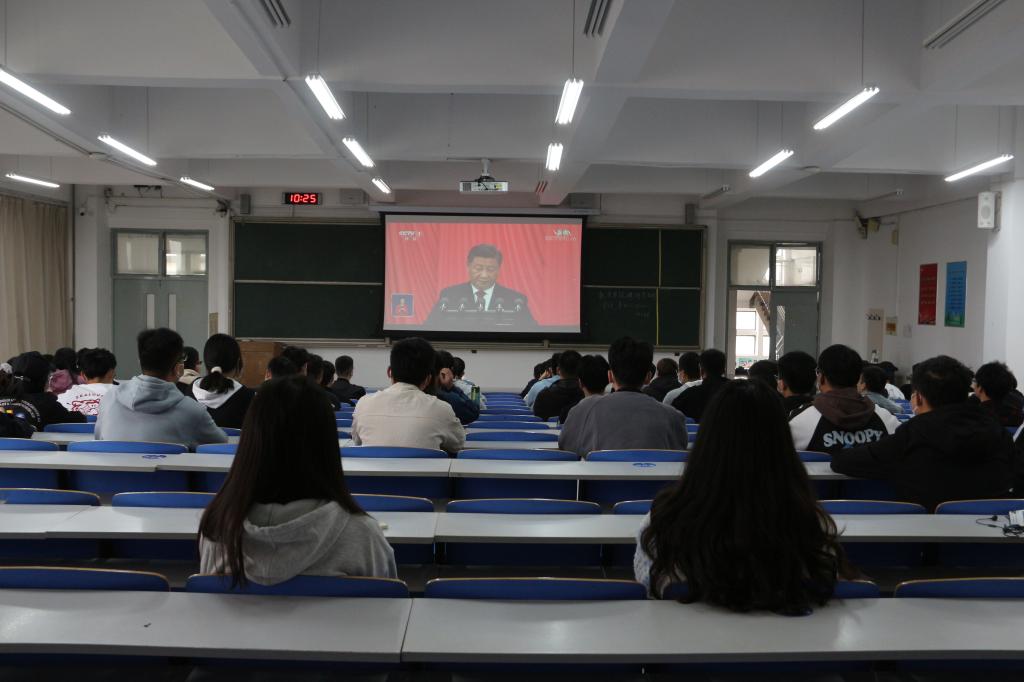 “高举中国特色社会主义伟大旗帜,全面贯彻习近平新时代中国特色社会主义思想,弘扬伟大建党精神,自信自强、守正创新,踔厉奋发、勇毅前行,为全面建设社会主义现代化国家、全面推进中华民族伟大复兴而团结奋斗……”习近平总书记铿锵有力的话语在学院楼、教学楼不断回荡,Ky开元集团青马工程启航班、嵙大·海信班、小平科技创新团队党支部、梦耀中华服务宣讲团、小平科技创新团队、退役复学学生以及各党团支部于报告厅、会议室、教室集中观看二十大开幕盛况,聆听习近平总书记代表十九届中央委员会向大会所作的报告。会议中同学们都聚精会神聆听习近平总书记的重要报告,时而响起激动的掌声。