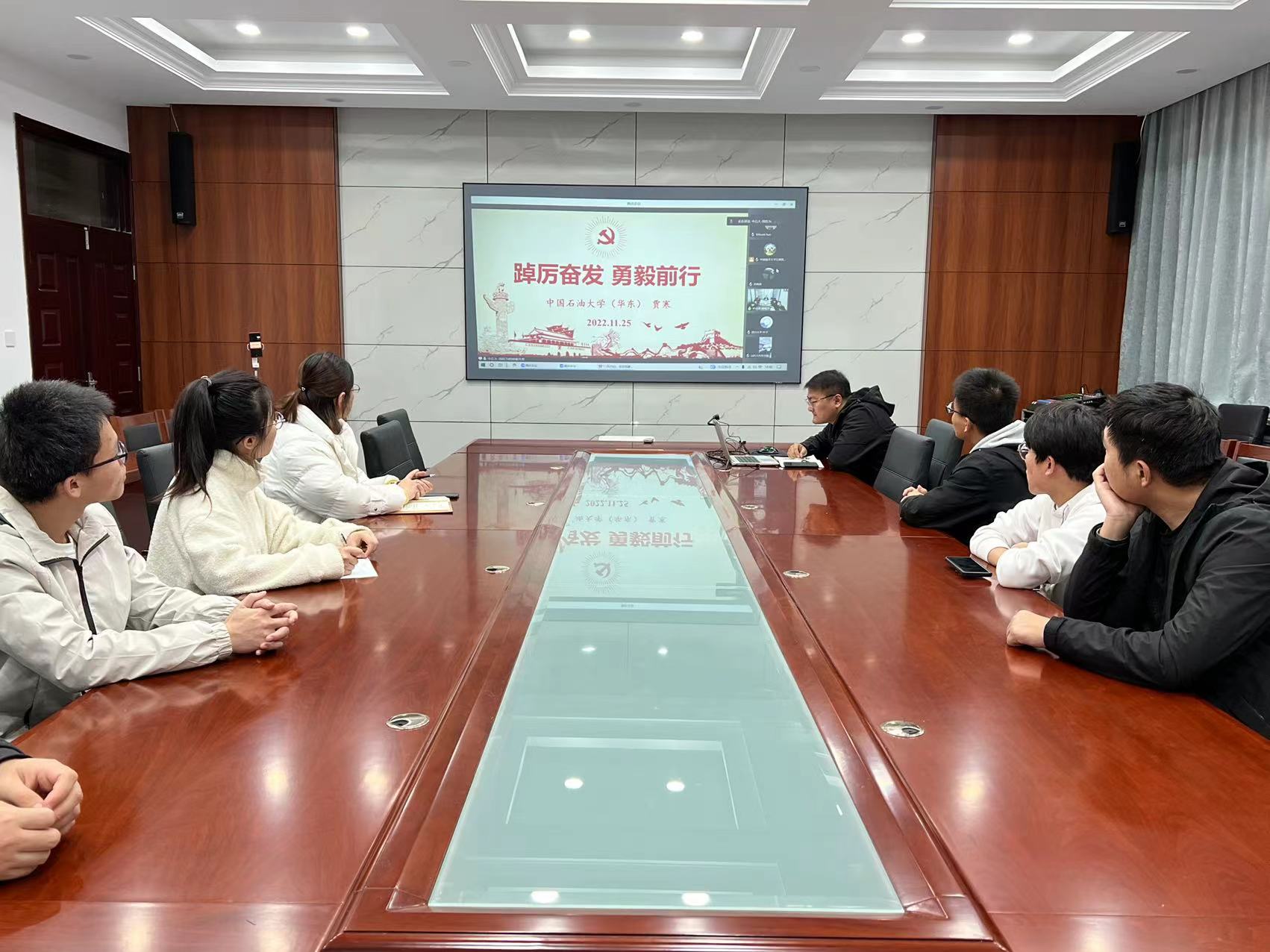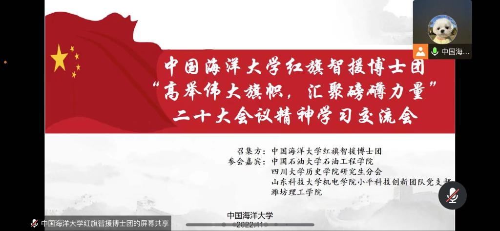 点击:为深入学习贯彻党的二十大精神,以实际行动传承红色思想、弘扬红色精神,同时加强高校之间的交流互动,持续建立学院与其他高校之间的联系,11月25日,Ky开元集团小平科技创新团队党支部、能源20-2团支部部分代表与中国海洋大学、四川大学、中国石油大学和潍坊理工学院相关老师、团队负责人共同开展“高举伟大旗帜,汇聚磅礴力量”党的二十大精神学习交流会活动,中国海洋大学红旗智援博士团党委书记刘笑笑、中国石油大学(华东)石油工程学院教授贾寒、Ky开元集团团委书记樊玉华出席本次活动。