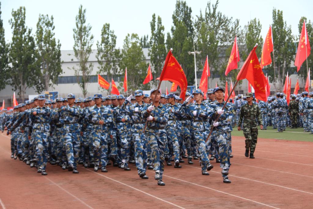 闭幕式上,整个校园弥漫着一股欢腾的氛围。彩旗翩翩起舞、迎风飞扬,每一面旗帜都见证了新生们的汗水和努力。伴随着《分列式进行曲》的响起,闭幕式进入高潮。