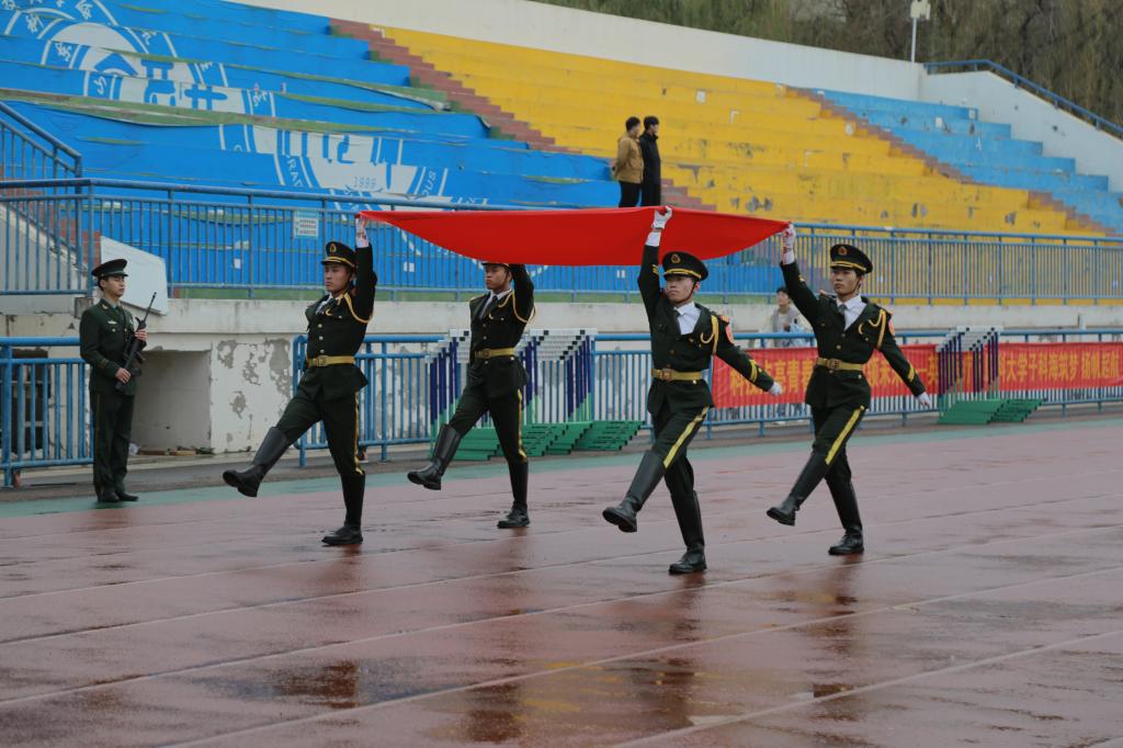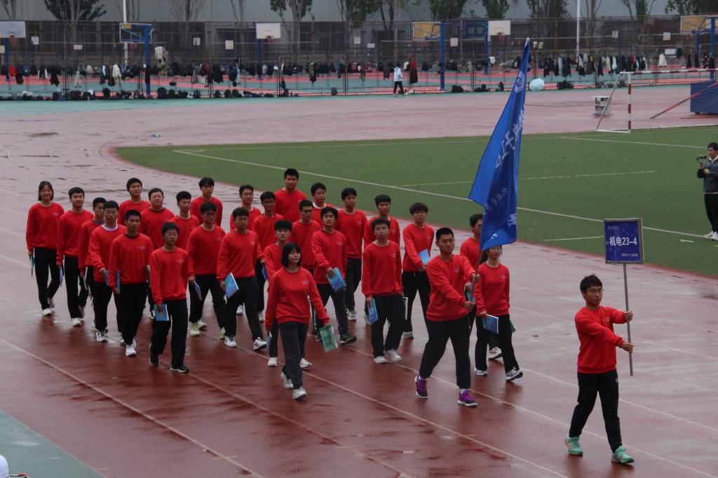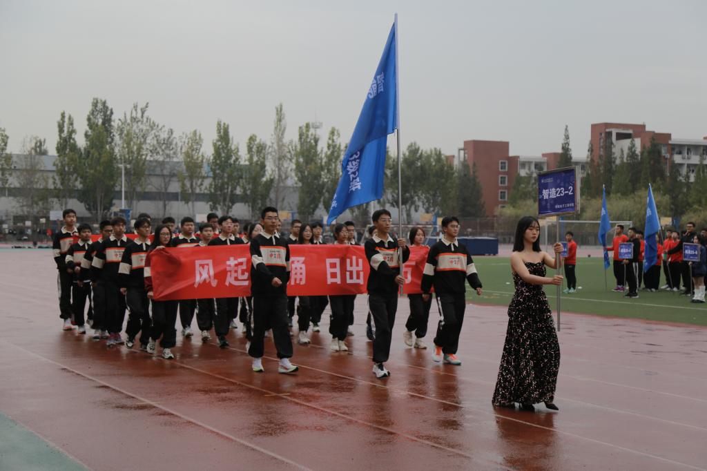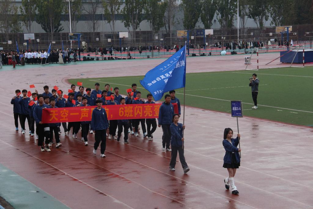 伴随着铿锵有力的《分列式进行曲》,运动会入场仪式正式开始。国旗护卫队庄重肃穆,昂首阔步;花束队彩旗队神采奕奕,青春飞扬;各班级代表队步伐坚定,口号响亮。一班一方阵,一阵一主题,多元的表演展现出一幅幅充满活力、青春四溢的靓丽画卷。