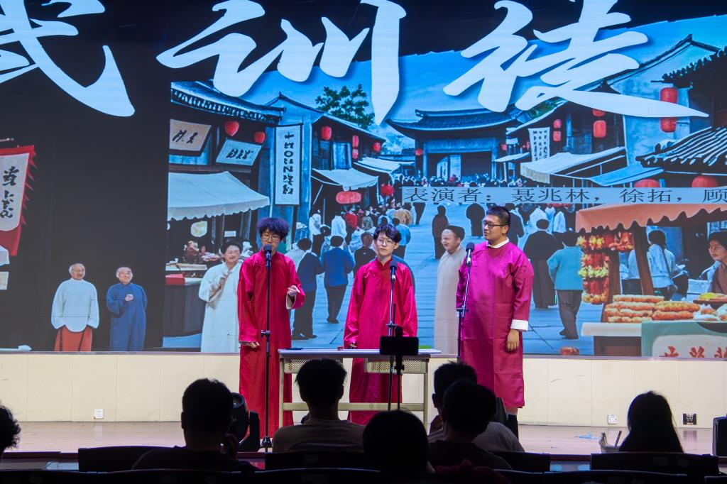 声乐类节目同样精彩纷呈:歌曲《大同》以悠扬的旋律与深情演唱,传递出对和谐社会的向往,引发观众共鸣;小品《武训徒》结合工科特色,以诙谐幽默的台词和夸张的肢体语言,讲述了队长与队员间啼笑皆非的“技术传承”故事,台下笑声不断,掌声雷动。