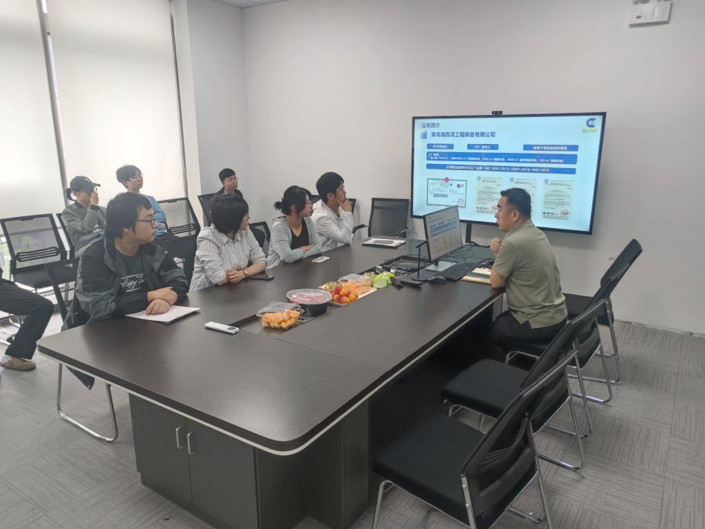 活动伊始,青岛阔海船舶科技有限公司副总经理李朋鹏、吴会对师生一行的到来表示热烈欢迎。座谈会上,公司副总经理李朋鹏围绕企业发展历程、核心业务、技术优势及未来战略规划进行了详细介绍。随后,副总经理吴会从毕业生关注的职业发展角度切入,系统讲解了企业人才需求标准、岗位晋升机制、薪酬福利体系及员工培养计划,并强调公司注重“技术+管理”双通道发展模式,为青年人才提供广阔成长空间。