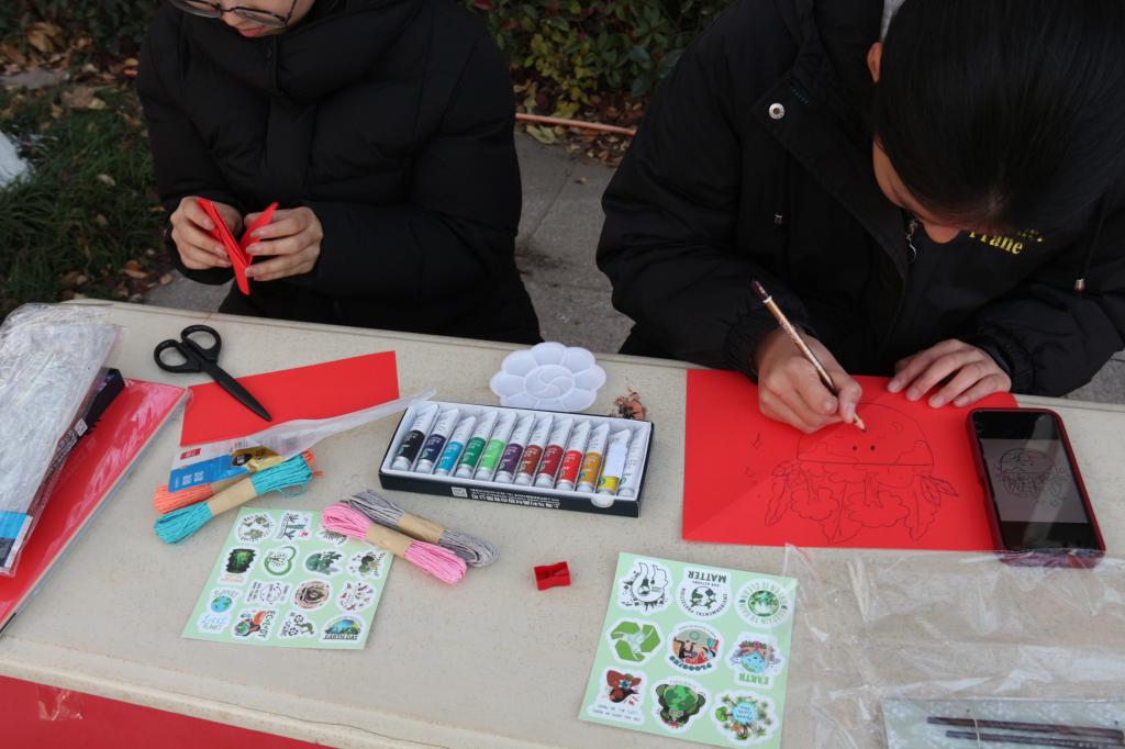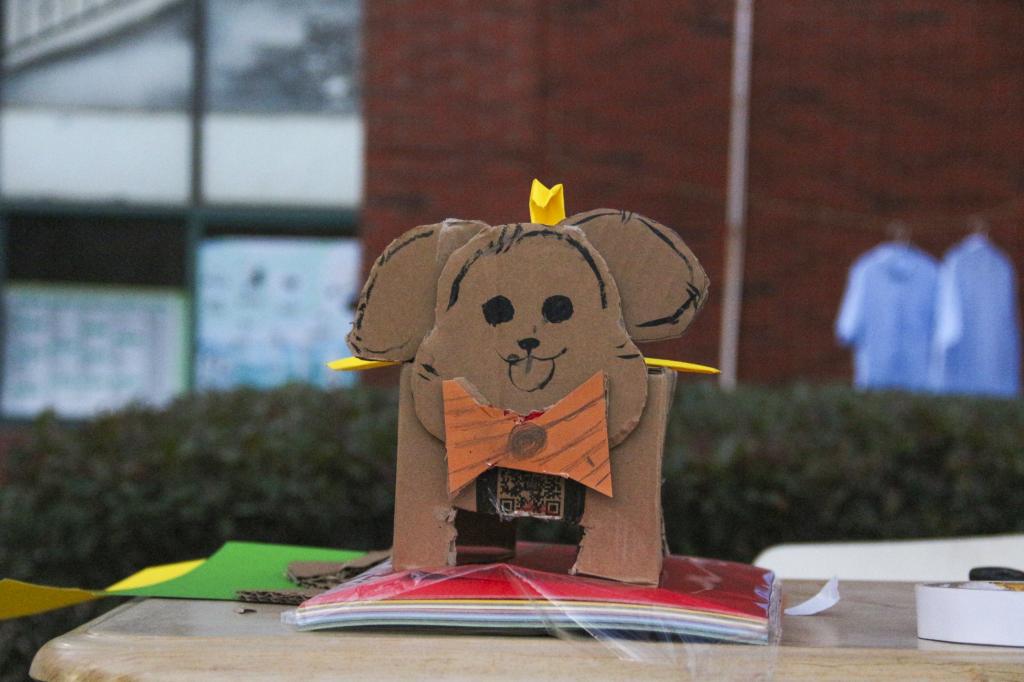 活动伊始,繁星广场西北角便呈现出忙碌而有序的景象。同学们带着提前收集的各类闲置快递纸箱纷至沓来,这些平日里可能被随手丢弃的包装盒,此刻成为了创意实践的核心材料。主办方贴心地为参与者准备了剪刀、环保颜料、画笔、胶水等辅助工具,确保活动既丰富多彩又安全环保。