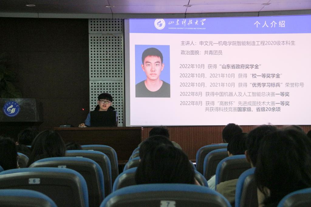 会议伊始,崔洁旭结合自己参加科创比赛的经历,就三维建模对学习的帮助、“高教杯”竞赛的内容、科创比赛流程以及奖项设置等方面展开宣讲,鼓励大家积极参与创新创业计划。随后,王新杰以三维数字化建模大赛为例,介绍了科创竞赛的参赛流程及方法,并展示了部分大赛对参赛作品的要求。最后,申文元讲解了中国机器人及人工智能大赛的相关内容,极大的提高了同学们对科创比赛的兴趣。