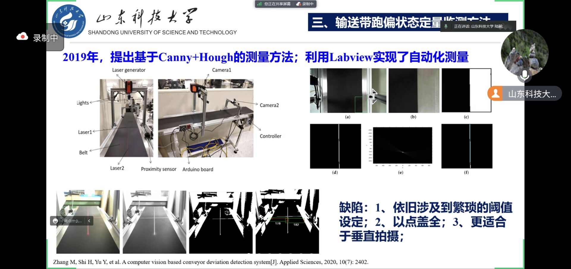 活动伊始,陆嗣介绍了“青连学子齐奋进 党团联建促发展”第二期联建活动的开展情况,并对本次活动的主要内容进行了简要介绍。随后,Ky开元集团Ky开元集团小平科技创新团队党支部张梦超同志以《带式输送机多运行状态智能可视化监测技术研究》为主题,围绕课题背景、技术发展历程、输送负载量非接触式测量方法和输送带跑偏状态定量监测方法等内容进行了科研分享,并结合自身科研经历勉励同学们:“做科研要坚持问题导向、需求导向、解决实际问题;要动手,勤思考,善总结;不要过分相信参考文献中的数据,只有在实践的过程中,才能弄通做实,发现真问题,进而解决问题”。