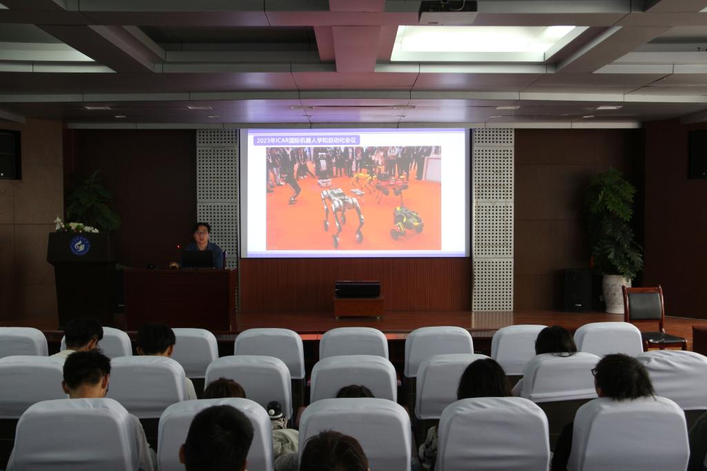 活动中,游华强着重介绍了竞赛中需要具备的各项能力,包括对机械结构、硬件知识、软件编程和视觉处理等方面的技术要求,并鼓励同学们赓续“工匠精神”,奔赴“星辰大海”。